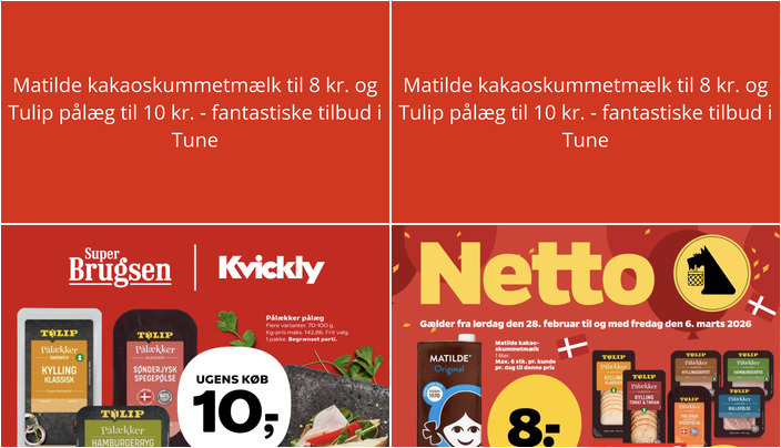 Vi har gennemgået denne uges tilbudsaviser fra dagligvarebutikker i Tune og fundet nogle utrolige tilbud. Her er et udpluk af de bedste tilbud fra Netto og SuperBrugsen.